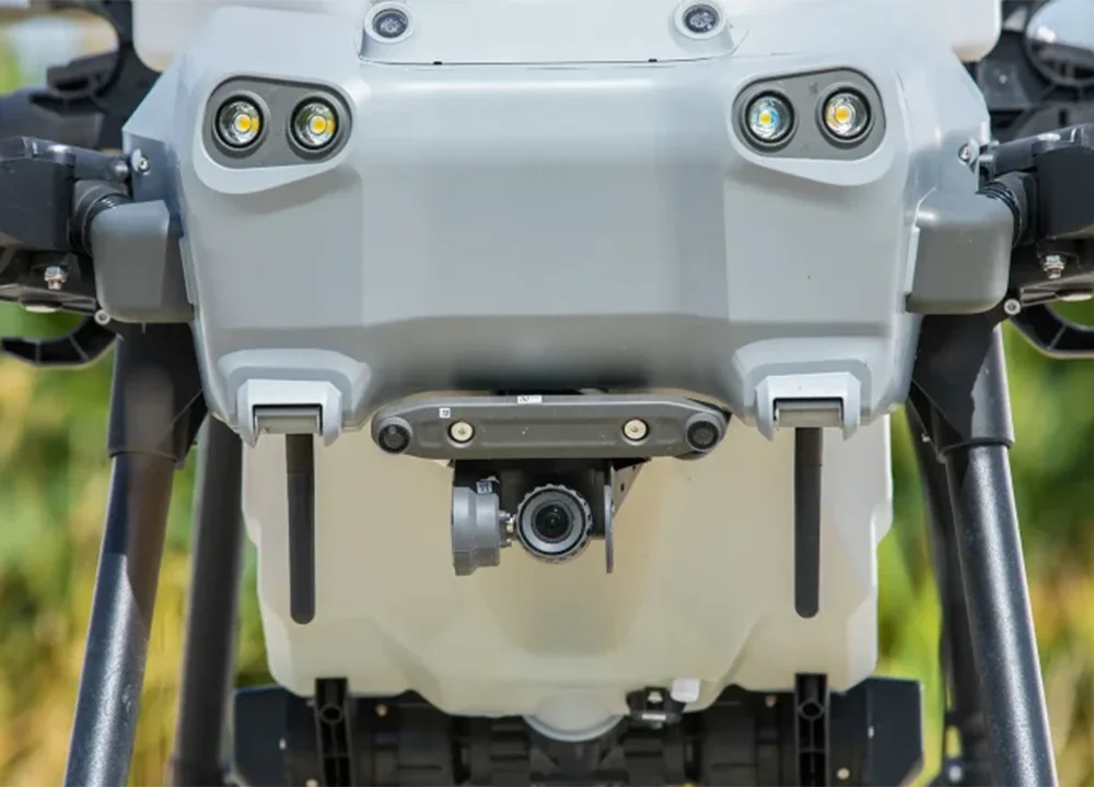 Für einen sicheren Betrieb verfügt die AGRAS T25 über Phased-Array-Radare vorne und hinten, kombiniert mit zwei binokularen Sichtsensoren. Diese ermöglichen eine multidirektionale Hinderniserkennung und eine Geländeverfolgung von bis zu 50°. Damit lassen sich auch Hanglagen und Steillagen zuverlässig bearbeiten. Hindernisse werden frühzeitig erkannt und automatisch umflogen. Ein entscheidender Vorteil in unebenem Gelände oder zwischen engen Rebstöcken.