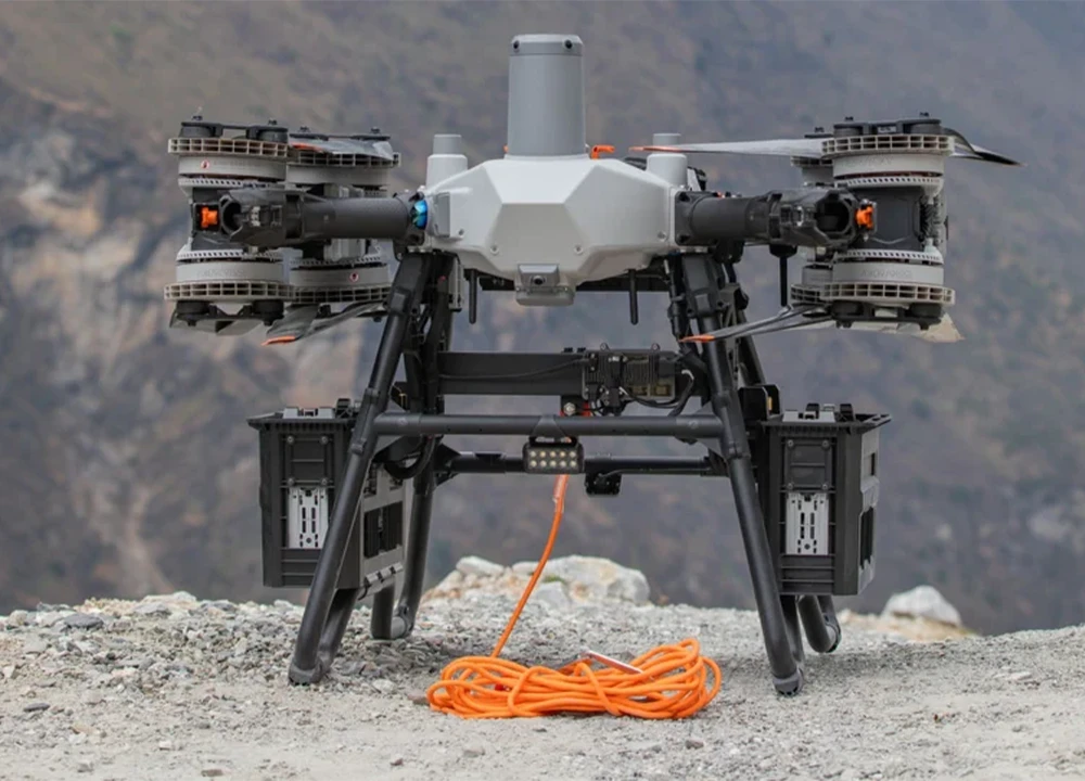Die Lastaufnahme erfolgt über einen stabilen mechanischen Haken. Das Hebesystem ist vollständig in die Flugsteuerung der DJI FlyCart 100 integriert und lässt sich während des Einsatzes überwachen. Typische Anwendungen sind Materialtransporte, Bau- und Infrastruktureinsätze sowie logistische Aufgaben in gut kontrollierbaren Einsatzgebieten.