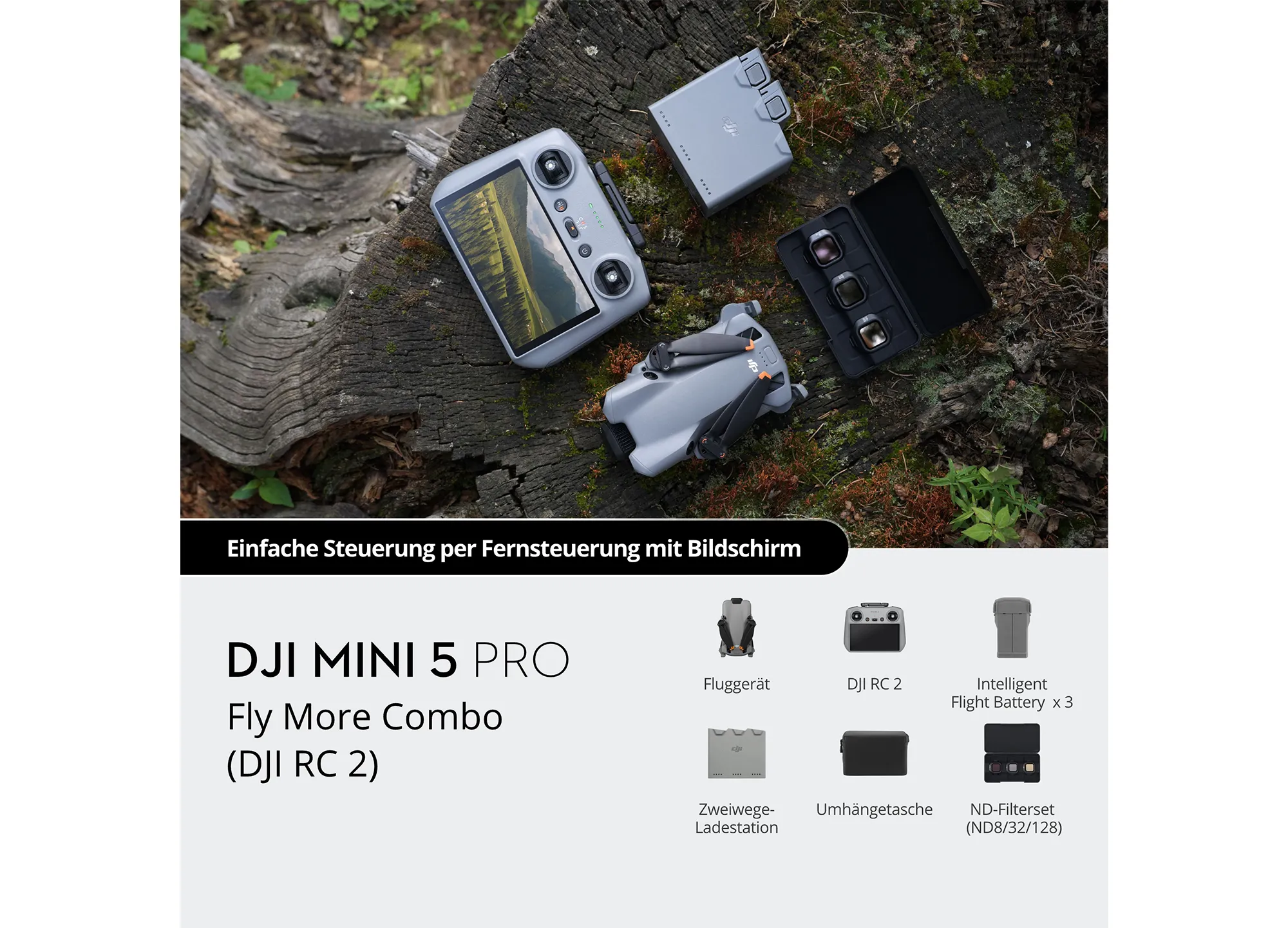 Für unterschiedliche Einsatzbereiche stehen verschiedene Combos und Zubehör zur Verfügung. ND-Filter helfen bei wechselnden Lichtverhältnissen, zusätzliche Akkus verlängern die Flugzeit, und der Two-Way Charging Hub sorgt für effizientes Laden und Energie-Management. So bist du immer optimal ausgestattet, egal ob für Freizeit, Reisen oder professionelle Projekte.