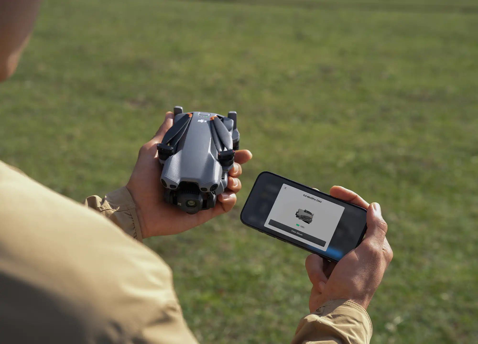 Praktisch für unterwegs: Die Mini 5 Pro lässt sich innerhalb der Bluetooth-Reichweite per DJI Fly App aufwecken und ermöglicht drahtlose Dateiübertragungen mit bis zu 100 MB/s via Wi-Fi 6. Selbst wenn du zwischendurch andere Apps verwendest, läuft der Transfer im Hintergrund weiter.