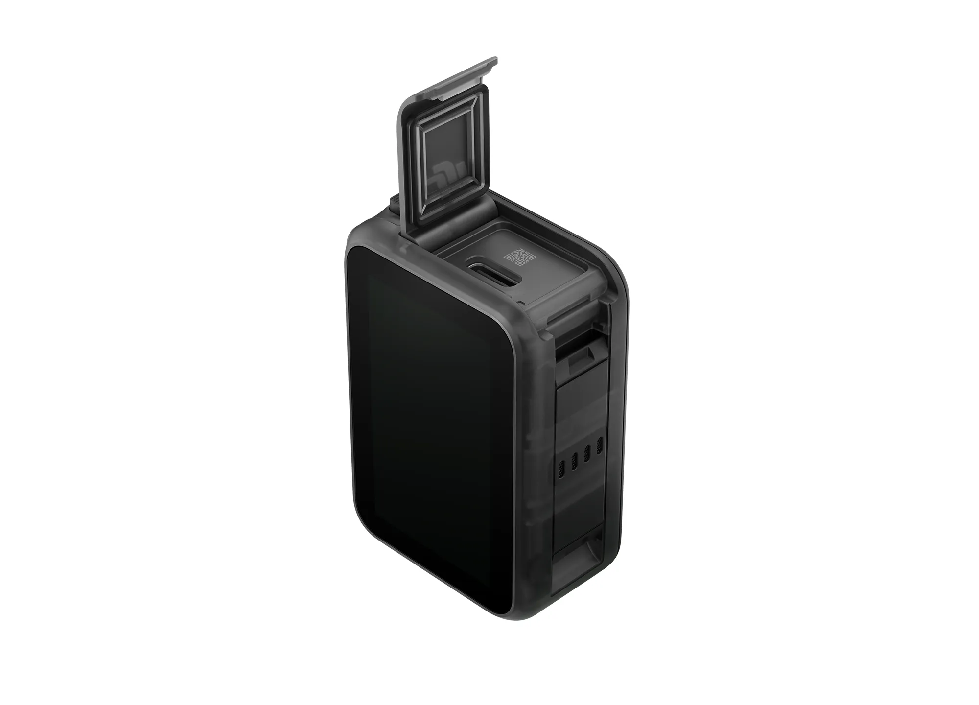 Das Vision Dock dient als Ladestation, Steuerzentrale und bietet einen integrierten Touchscreen. Es unterstützt Schnellladung (80 % in 20 Minuten) und verlängert die Aufnahmezeit auf bis zu 200 Minuten (1080p/24fps). Zusätzlich ermöglicht es den Export über microSD und sorgt für komfortable App-Steuerung mit Live-Ansicht.