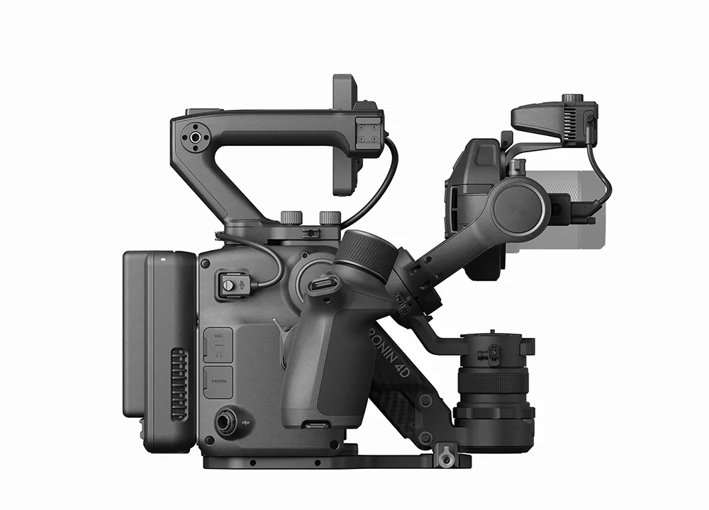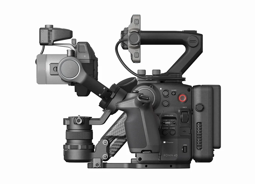 Die Ronin 4D integriert die Bildgebungs- und Stabilisierungssysteme, während nur der Sensor und die notwendigen optischen Komponenten in der Gimbal-Kamera belassen werden. Die Neigeachse des Gimbals verwendet zwei symmetrische Motoren, während sowohl die Schwenkachse als auch die Rollachse mit einem zusätzlichen Steifigkeitspuffer ausgestattet sind.