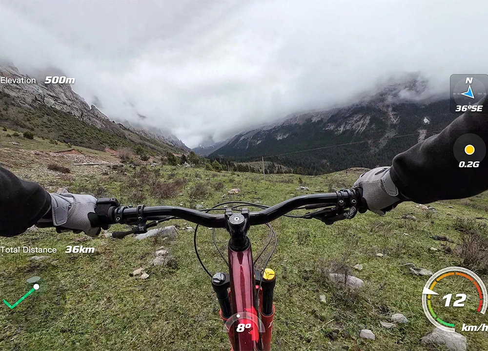 Dank integriertem GPS zeichnet die Fernbedienung wichtige Bewegungsdaten auf. In der DJI Mimo App kannst du diese Daten direkt als Overlay anzeigen lassen, was besonders für Sportlerinnen und Sportler ein grosser Mehrwert ist, da Geschwindigkeit, Strecke oder Höhe direkt im Video sichtbar werden.